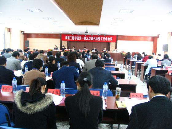 | ��3月28日,我校首届三次教职工代表大会暨工会会员代表大会在新校区举行。本次大会为期一天。来自全校各系部、机关的100名教师代表和工会代表以及15名特邀代表汇聚一堂,共商学校发展大计。校领导李惠钦、蒋新华、李永苍、黄发良、鄢行龙、张建勋、林国强、陈文哲出席了大会。 会议期间,全体代表以对学校改革和发展高度负责的精神,对大会的主要报告和文件进行了认真的讨论和审议,通过了有关决议,圆满完成了大会的各项议程,达到了预期的目的。 会议认真听取并审议了蒋新华校长作的题为《坚持科学发展 加强规范管理注重内涵建设 全面提升学校教育教学质量和办学水平》的工作报告和黄发良主席作的题为《学习贯彻十七大精神 加强和改进工会工作》的报告;听取了张建勋副校长关于《福建工程学院章程》(草案)的说明;讨论和审议了《学校财务工作报告》、《提案工作报告》、《2007年校工会经费审查报告》;审议了《福建工程学院章程》(草案)。 �� 会议认为,蒋新华校长所作的工作报告,实事求是地回顾和总结了学校一年来取得的主要成绩和基本经验,客观分析了学校面临的形势和存在的问题,提出的2008年学校工作的基本思路是符合实际和切实可行的,对进一步调动和发挥广大教职工参与学校建设的积极性和创造性,全面提升学校教育教学质量和办学水平,将起到重要作用。 会议认为,黄发良副书记所作的工会工作报告,客观、全面地总结了一年来的工会工作,并对2008年工会工作目标和主要任务提出了建议。这些建议方向明确,思路清晰,符合实际,对进一步推进学校工会、教代会工作将产生积极作用。 �� 会议期间,代表们发扬主人翁精神,以高度的使命感和责任感,就学校改革、建设和发展中教职工普遍关注的问题提出了一些很好的提案、意见和建议。大会要求秘书处在会议结束以后,将代表们提出的各项意见与提案,按照教代会相关工作程序反馈给有关部门,并通过教代会与校务公开制度予以监督落实,及时将落实与进展情况反馈给大会代表与全校教职工。 大会号召全校教职工在校党委的领导下,认真学习贯彻党的十七大精神,立足岗位、争做贡献,不断开创学校各项工作的新局面,为把我校建设成为省内一流、国内知名的应用型本科大学而努力奋斗! (校工会供稿,党委宣传部编辑)  | | | | | |