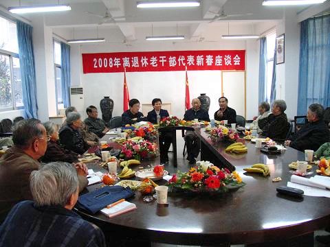 |  1月9日下午,我校2008年离退休老干部代表新春座谈会在图书馆二楼会议室召开,党委书记李惠钦、校长蒋新华、副校长张建勋,离退休干部工作处、党办・院办・外事办、后勤处、宣传部,及离退休老干部代表们以及离退休工作人员出席了座谈会。会议由副校长张建勋主持。 党委书记李惠钦、校长蒋新华代表校党政领导、师生员工向离退休老干部拜年,并通报了学校2007年各方面工作开展情况和2008年工作计划。老干部代表们就今后学校工作,尤其大学城新校区建设在会上踊跃建言献策。 会上,党委书记李惠钦、校长蒋新华向老干部代表发放春节慰问金。(人事处・离退休干部工作处) | | | | | |