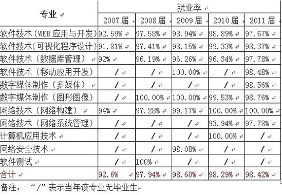 据不完全统计,近两年来软件学院经过校外集中实训锻炼的学生共400多人,初次就业率达100%。而且很多学生一毕业就能有2000-3000的工资,到了1-2年之后,月薪达到5000的也很正常。