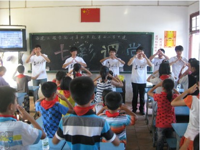 福建工程学院学生暑期助力榜山镇经济社会发展 来源:福建工程学院 日期:2012年07月26日  暑期来临之际,来自福建工程学院计算机系的大学生暑期“三下乡”社会实践服务队来到了“龙江风格”的发源地——龙海市榜山镇,开展以“青春九十年服务新跨越”为主题的暑期社会实践活动。 这些大学生志愿者们充分发挥其计算机专业特色、人才优势和团队资源,结合榜山镇地区经济社会发展的实际需要开展了一系列活动。志愿者们来到洋西小学开展了农村留守儿童教育帮扶服务、留守儿童“七彩课堂”等活动,与洋西小学50位同学在活动中一起分享知识和快乐。同时,把温暖服务带进社区,为广大居民群众开展电脑义务维修服务和防台防汛知识宣传。实践团队还结合榜山镇党委政府所开展的安全生产管理工作,协助开展丰富多彩的安全生产宣传教育活动,通过发放安全生产宣传材料、开展安全生产咨询活动,深入榜山镇社会和企业生产的第一线,努力营造“科学发展、安全发展”的氛围,为榜山经济社会又好又快发展提供力所能及的服务。