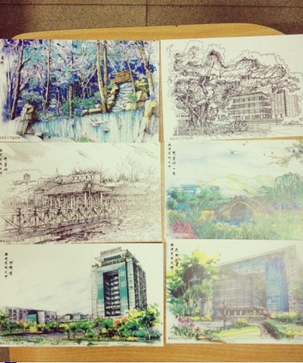 农林大学的6张手绘明信片