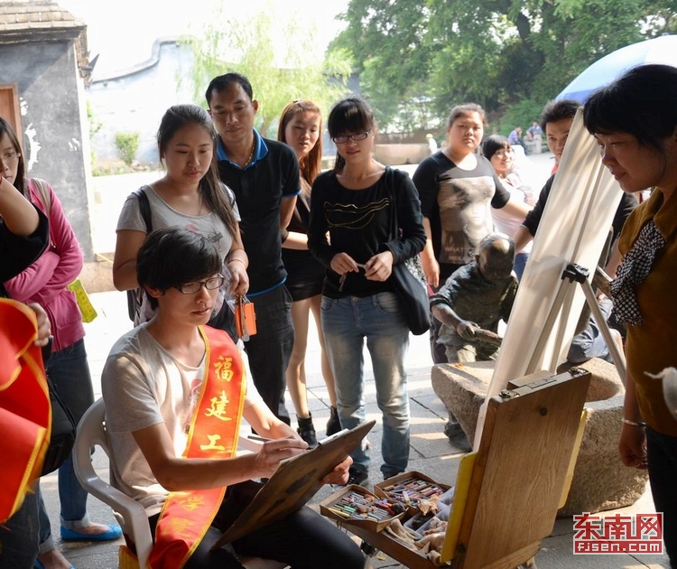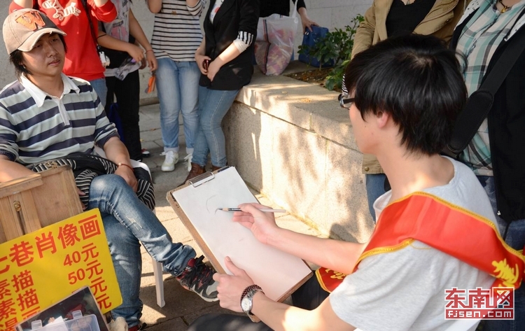 东南网2013.4.24:闽工院学子三坊七巷写生义卖 支持雅安