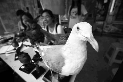 观鸟社团的同学们现场摆出标本给感兴趣的同学讲解