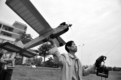 手里高举着“飞机”,往前快跑几步,猛地一甩手,“飞机”直冲云霄。周三下午,在福建工程学院C1楼前的一块大草坪上,福建省航空学会科普部部长、全国航模界知名教师高宪农,正在教几名大学生进行遥控飞机模型飞行操控训练,这些学生来自福建工程学院的航模协会。