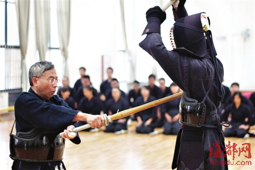 七段高手指导大学生练习剑道