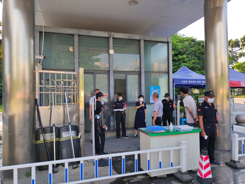 9月14日下午,校党委副书记徐子青率武保部负责人及相关人员检查指导校园疫情防控保卫工作。