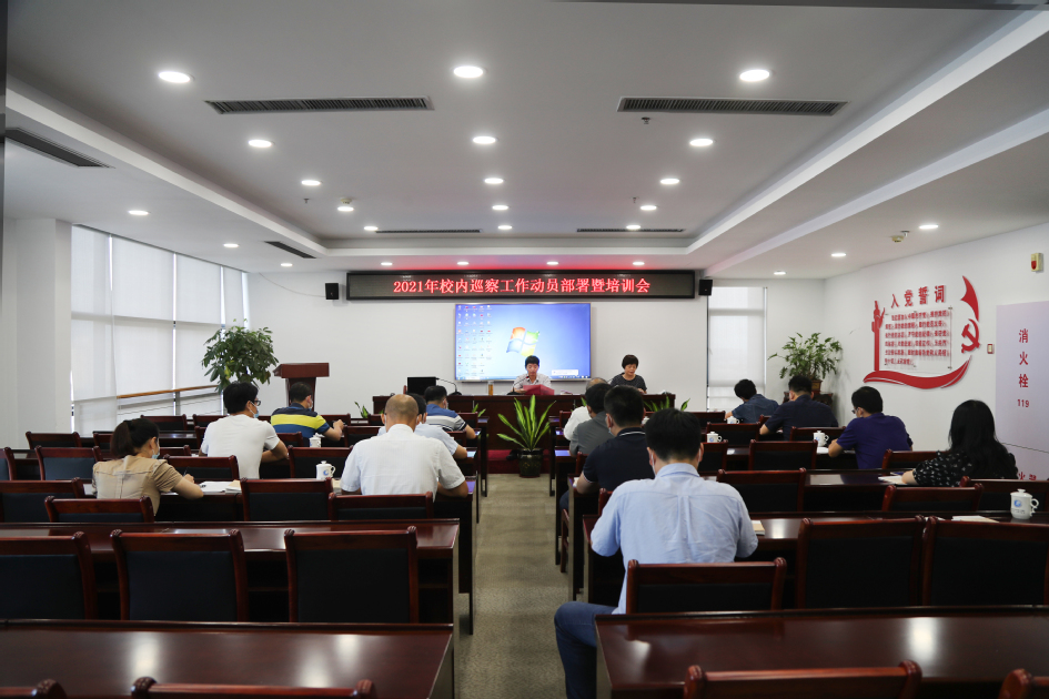9月24日下午,学校在行政楼第二会议室召开2021年校内巡察工作动员部署暨培训会,校党委副书记、校党委巡察工作领导小组副组长詹松青,校纪委书记、监察专员、校党委巡察工作领导小组副组长王宜勤出席会议,校党委巡察工作领导小组成员,巡察办、组织部、纪检监察部门相关人员,巡察组和党组织建设专项检查组全体成员参加会议。会议由王宜勤同志主持。