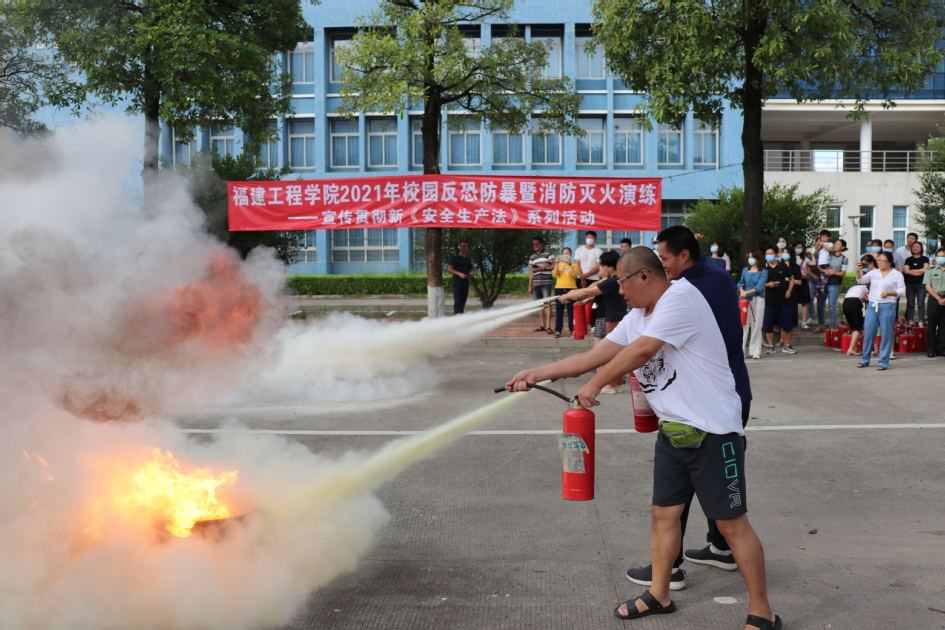 武保部负责人首先将新《安全生产法》精神向参加活动的师生进行传达和解读。同时,结合校园火灾发生和反恐防暴应急处置的特点,讲解了如何增强反恐防暴意识、提升快速反应和果断处置能力、开展火灾隐患排查整治、完善火灾应急处置、掌握初起火灾扑救办法等内容。期间,参加演练的师生先后进行了反恐防暴器械使用和对抗演练、使用灭火器扑灭初起火灾现场实战演练,演练活动达到了预期目的、收到了良好效果。
