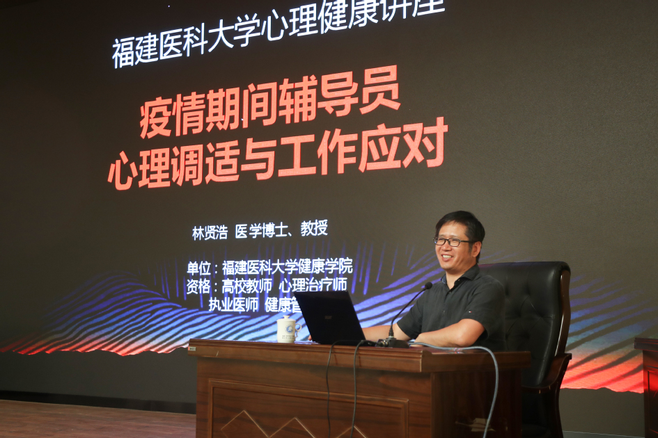 本次讲座邀请了福建医科大学林贤浩教授作专题报告,林教授围绕对疫情的心理反应与对策、隔离期间的心理反应与对策和疫情期间辅导员的心理特点与应对三个方面展开,重点分析了身心调适的心理阻抗,指出疫情防控常态化下辅导员要“顺其自然、为所当为”,在做好学生工作的同时关注自身心理,并采取有效对策提高心理工作的应对能力,做到“认清现实、适应现实”。