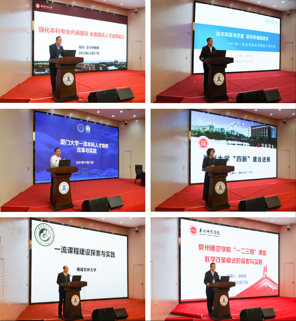 厦门大学、福州大学、福建工程学院、福建师范大学、福建农林大学、泉州师范学院等高校代表分别围绕“双一流”建设、“四新”建设、应用型本科、一流专业、一流课程及课堂教学改革等主题进行交流发言,共同研讨服务福建省全方位推进高质量发展超越,助力加快推进教育现代化、建设教育强省、办好人民满意教育。