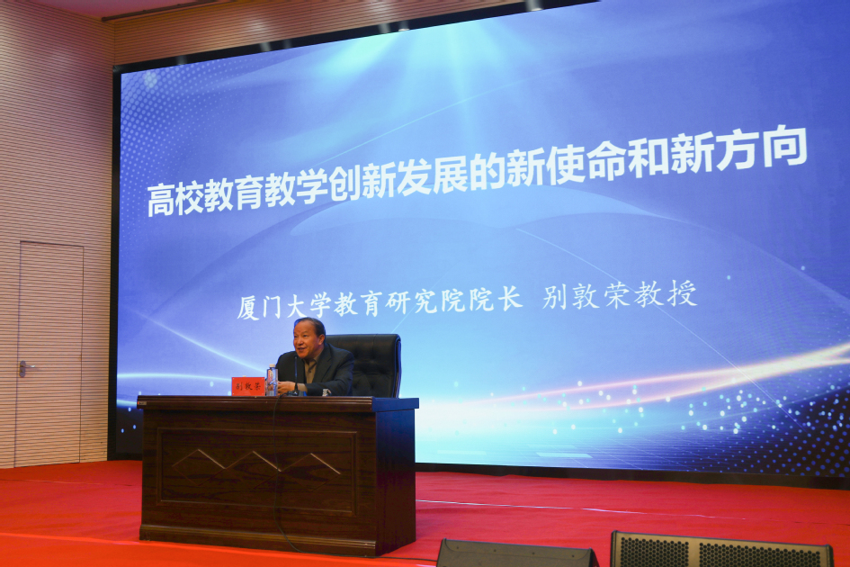 厦门大学教育研究院院长、博士生导师别敦荣教授作主题为《高校教育教学创新发展的新使命和新方向》的专题辅导报告。别敦荣教授围绕我国高等教育教学所面临的新形势、新使命和新方向,通过对比中外、闽台高等教育发展现状,深刻分析了高等教育教学的发展成就、存在问题,并指出我省高校可以通过强化学科内涵建设、加强师资队伍建设、深化产教融合、推进课堂革命、提升教学质量、改善教学条件等举措,科学设计教育教学体系,优化区域教育资源配置,共同推动我省高等教育的全面改革与创新发展。