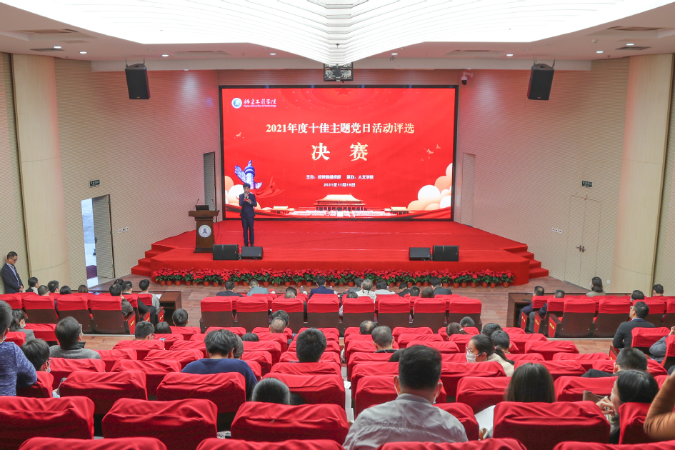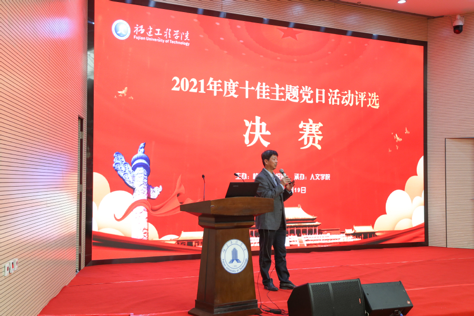 为扎实推进党史学习教育,持续深化党建“双创”工作,提升基层党支部组织活力,充分发挥先进典型的示范作用,学校结合“再学习、再调研、再落实”活动和“我为师生办实事”实践活动,于11月19日下午,在行政楼一楼学术报告厅开展2021年度校十佳主题党日活动评选决赛。校党委副书记詹松青,组织部、宣传部、学工部负责人,各二级单位党委书记、组织员,党支部书记代表、参赛党支部党员代表等100余人现场观摩。福建农林大学戴祐坤、福建医科大学孙本玲、福建师范大学钱从明受邀到校担任大赛评委。