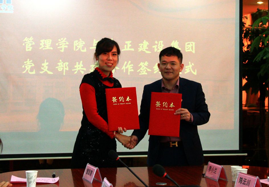首先,校企双方举行了党支部共建合作签约仪式。管理学院教工第一党支部、教工第三党支部与森正建设集团党支部签订合作协议。随后,管理学院教工第三党支部以“党建+”项目合作为思路,结合学院推动的学生创新创业工作坊建设,分享了与森正建设集团党支部共建“党建+”学生创新创业工作坊的构想。