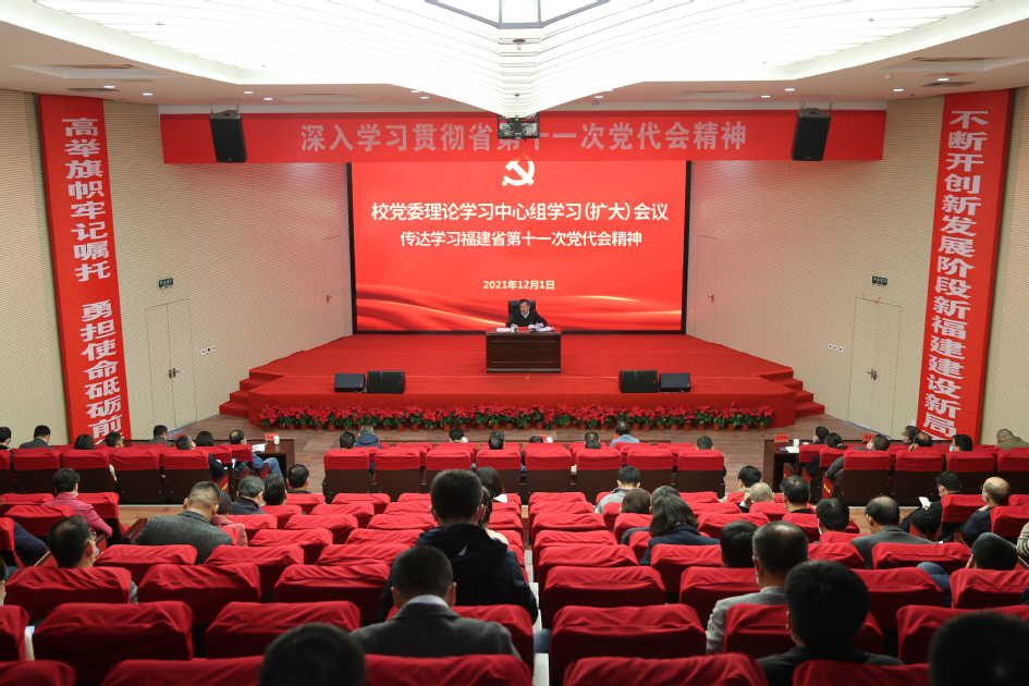 12月1日上午,校党委书记吴仁华主持召开校党委理论学习中心组学习(扩大)会议,认真传达学习福建省第十一次党代会精神,部署学校学习宣传贯彻落实工作。校领导、全校中层干部等150余人参加会议。