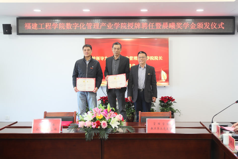 12月29日下午,福建工程学院工程数字化管理产业学院授牌聘任暨晨曦奖学金颁发仪式在校举行。校党委书记吴仁华、副校长何仕,福建晨曦信息科技集团股份有限公司董事长曾开发、常务副总裁和党群工作负责人陈文灵、全国运营副总监曾毅,党支部书记和高校事业部总经理崔志先,学校办公室、教务处负责人、管理学院和产业学院师生代表参加活动。