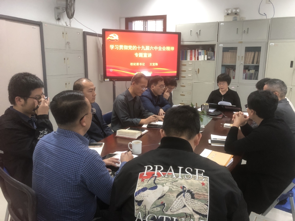 12月10日下午,校纪委书记王宜勤为纪检监察党支部作学习贯彻党的十九届六中全会精神宣讲报告。纪检监察党支部全体党员参加会议。