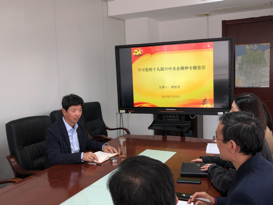 12月9日,校党委副书记詹松青为所在的统战部·机关党委党支部上学习党的十九届六中全会精神专题党课。