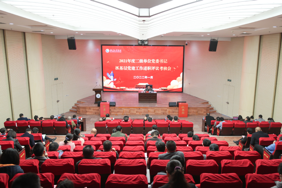 1月8日下午,校党委在行政楼学术报告厅召开2021年度二级单位党委书记抓基层党建工作述职评议考核会议。校领导,校“两委”委员,二级单位党委书记、院长、副书记、组织员,机关党群部门全体中层干部及科级干部代表,部分“两代表一委员”,基层党员干部和师生代表等共110余人参加了会议。会议由校党委书记吴仁华主持。