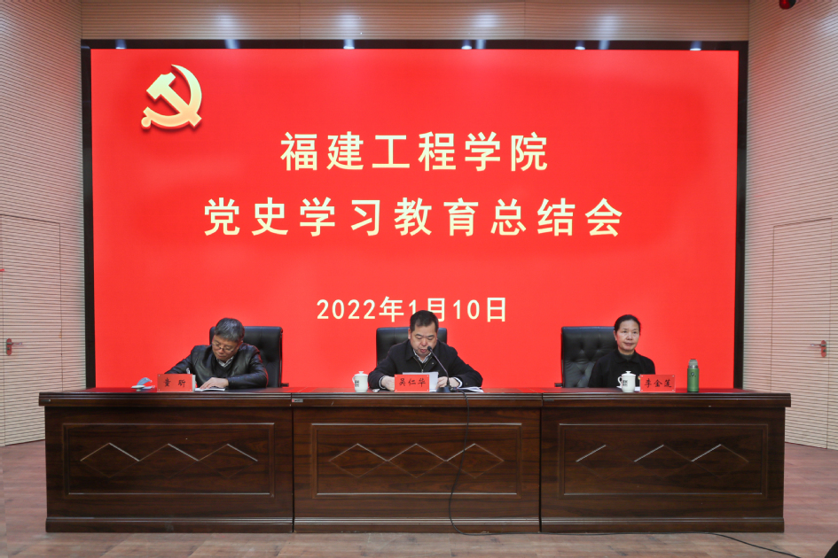 1月10日上午,福建工程学院在学术报告厅召开党史学习教育总结会,深入学习贯彻习近平总书记重要指示和中央、全省党史学习教育总结会议精神,回顾总结一年来学校党史学习教育开展情况,全面推进党史学习教育常态化长效化。省教育系统党史学习教育巡回指导一组组长李金莲到会指导。校党委书记、校党史学习教育领导小组组长吴仁华作总结报告。全体校领导,省教育系统党史学习教育巡回指导一组成员以及全体中层干部共130多人参加会议。