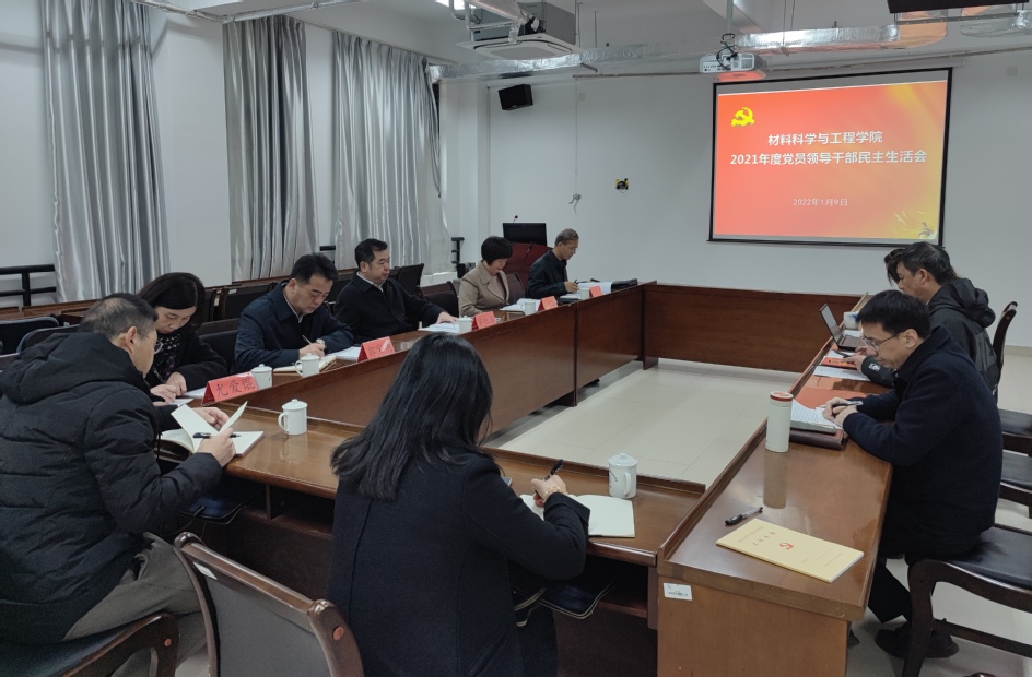 1月9日上午,材料科学与工程学院2021年度党员领导干部党史学习教育专题民主生活会在学院会议室召开。校党委书记吴仁华、校纪委书记王宜勤莅会指导,校党史学习教育巡回指导组成员,组织部、统战部、纪委(监察专员办公室)负责人陪同参加。