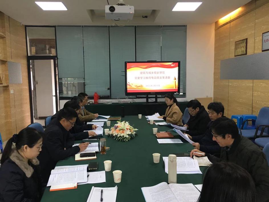1月10日上午,建筑与城乡规划学院召开党员领导干部党史学习教育专题民主生活会。校党委副书记詹松青,离退休工作处负责人,校党史学习教育巡回指导组、纪委(监察专员办公室)有关同志到会指导。