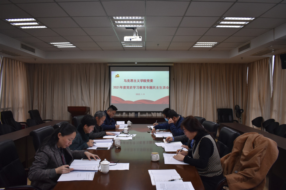 1月9日下午,马克思主义学院2021年度党员领导干部党史学习教育专题民主生活会在学院第一会议室召开,校党委副书记徐子青一行4人莅临指导。学院党政领导班子成员参加了会议。