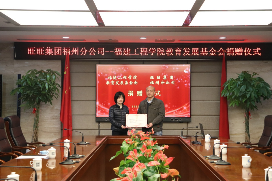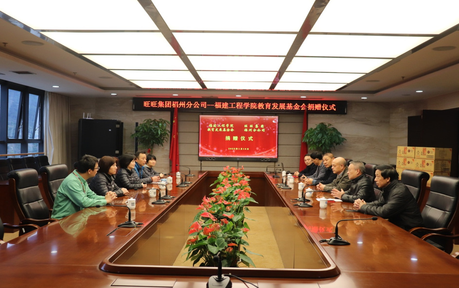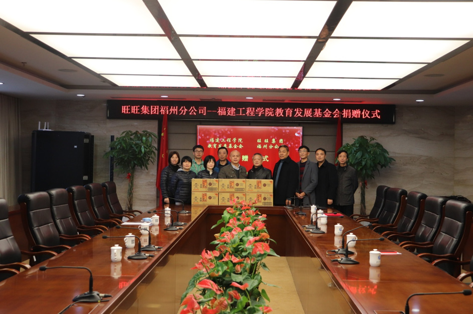 1月18日上午,旺旺集团福州分公司向福建工程学院教育发展基金会捐赠了一批物资,并在行政楼第一会议室举行捐赠仪式。旺旺集团福州分公司经理陆琼及部门主管人员,学校办公室、武保部相关负责人及有关人员参加捐赠仪式。