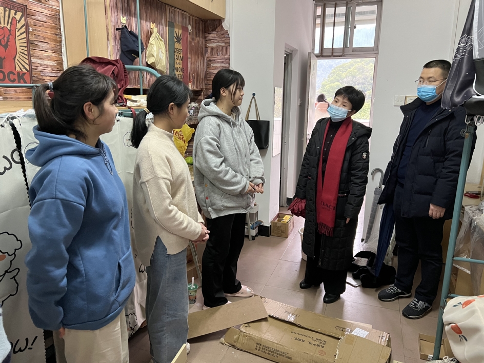 期间,徐子青副书记深入学生宿舍,暖心慰问返校学生,了解学生学习、生活情况,叮嘱学生要严格遵守疫情防控期间的校园管理要求,做好自我管理,养成良好的卫生习惯,保持宿舍通风透气,共同营造安全校园环境。(学工部供稿)