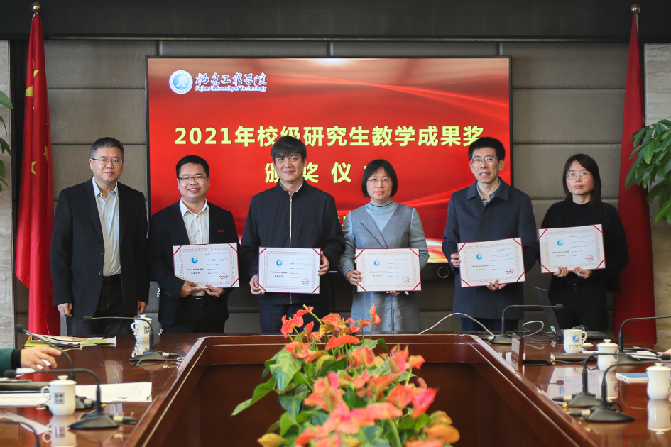 会上,首先举行了2021年校级研究生教学成果奖颁奖仪式。研究生处负责人宣读了获奖名单,韦建刚副校长为5个校级研究生教学成果奖获奖单位颁奖。