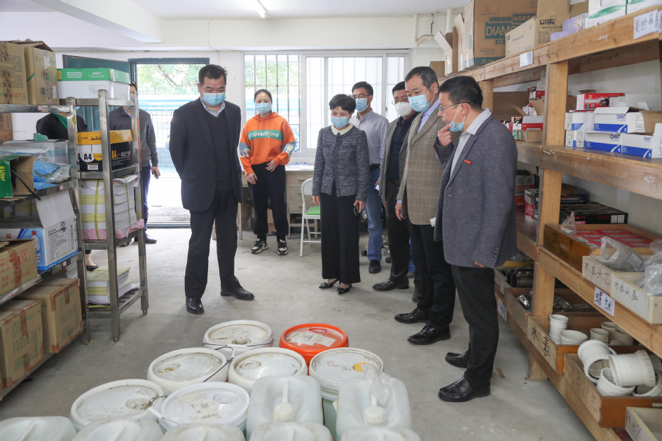 吴书记一行实地查看了学校库存的各类防疫物资,查看了物资的准备、存储、管理以及领用、发放工作,对防疫物资储备地点的消防安全工作提出了具体工作要求。吴书记强调:一要按照常态化疫情防控要求,进一步优化物资储备管理,建立科学储存模式,提前备齐校园常态化疫情防控所需的物资总量,确保物资采购流程规范,物资管理制度健全,资金拨付进度及时,保证物资长储长新。二要强化防疫物资的安全管理,尤其是严格规范84消毒液、酒精等消杀类物资的保存方法,杜绝安全隐患,保证储存环境安全、卫生。三要强化底线思维和风险意识,加强疫情防控措施落实情况的监督检查,查漏洞、补短板,慎终如始做到科学防控、精准防控,切实保障师生的身体健康和校园的安全稳定,坚决筑牢疫情防控安全防线。