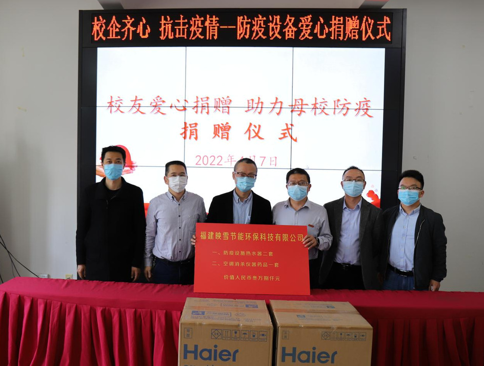 福建映雪节能环保科技有限公司向学校捐赠一批防疫设备