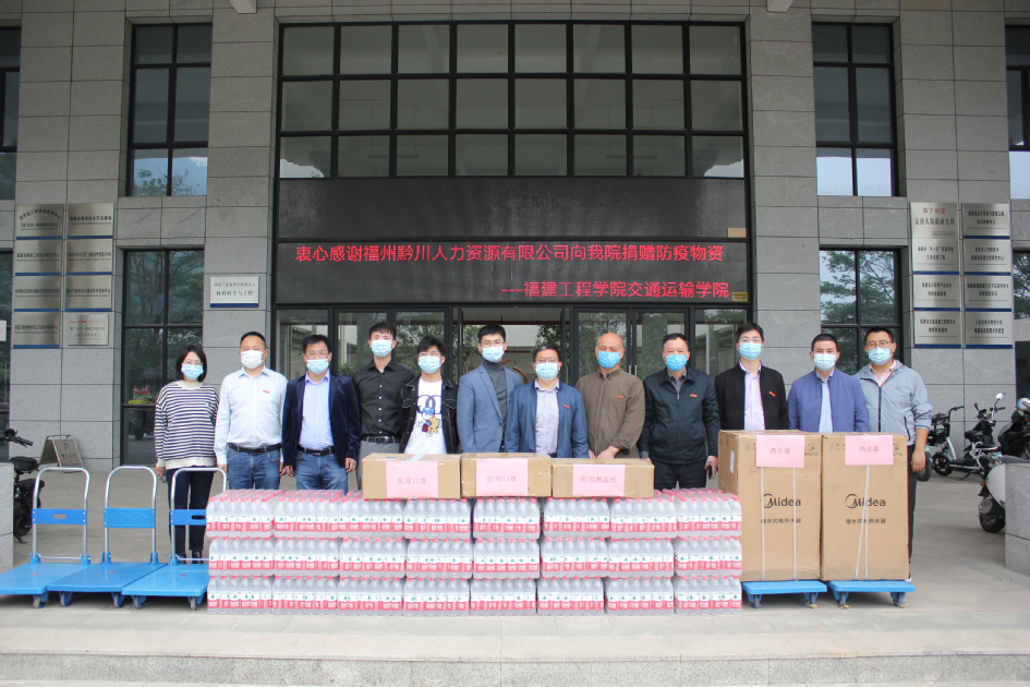 4月18日上午,校友企业、福州黔川人力资源有限公司向学校捐赠一批防疫物资。副校长何仕代表学校接受了捐赠,公司主要负责人、校友会负责人和交通运输学院党政班子成员及教师代表参加捐赠仪式。