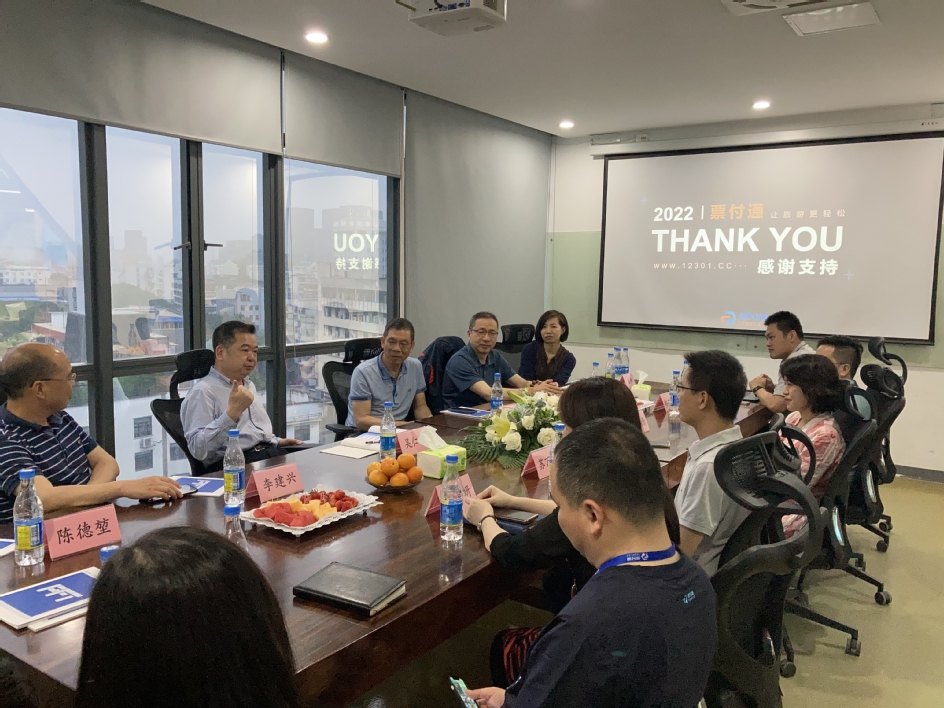 调研中,票付通创始人、学校校友苏万生向吴书记一行的到来表示热烈欢迎,并详细介绍了票付通的企业发展概况、产品矩阵、主要业绩以及积极打造智慧旅游助力乡村振兴的基本情况,期待与学校在人才培养一体化、产学研合作以及助力乡村振兴等领域探索创新性合作模式,实现互利共赢。