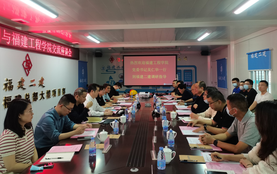 4月22日下午,校党委书记吴仁华带队赴福建二建建设集团调研交流。福建二建建设集团党委书记、董事长刘晓光,党委委员、总工程师黄跃森,党委委员、副总经理鲍丹宇,副总经理冯奇等企业领导以及近10名我校毕业生,我校管理学院及工程管理研究院、建筑现代化产业学院、工程数字化管理产业学院负责人及教师代表参加调研交流活动。双方在福建二建集团投资建设的中国华电福建总部大楼项目部举行座谈会。