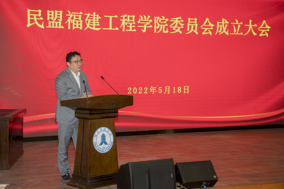 民盟省委会专职副主委刘泓代表民盟省委会对民盟福建工程学院第一届委员会成立大会的顺利召开和新当选的民盟第一届委员会领导班子表示热烈祝贺,向长期支持民盟总支部的福建工程学院党委表示衷心感谢,并对民盟福建工程学院总支部第二届委员会认真开展盟务工作,在提升组织活力、凝聚力与影响力等方面所取得的成绩表示充分肯定。他对新一届委员会提出三点希望与要求:一要加强学习,以思想塑盟,赓续民盟传统,深化合作初心教育,深刻领会和把握政治交接主题教育的要求和重要意义,确保中国共产党领导的多党合作事业薪火相传;二要积极履职,以合作兴盟,接续民盟事业、传承民盟担当,切实提升精准建言能力,不断提高社会服务水平,争取打造成为“创特色,增活力”先进基层组织,在推进多党合作事业中展示新作为、作出新贡献;三要注重培养,以人才强盟,努力建设高素质参政党队伍,积极稳妥地做好组织发展工作,不断提高政治把握能力、参政议政能力、组织领导能力、合作共事能力和解决自身问题能力,更好地发挥民盟作为中国共产党的好参谋、好帮手、好同事的作用。