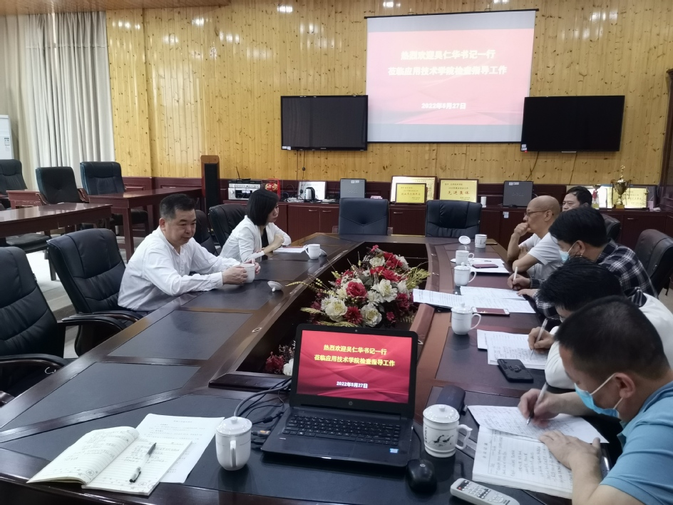 5月27日下午,校党委书记吴仁华深入应用技术学院调研指导工作,详细了解学院就业工作和回迁工作推进落实情况。应用技术学院党政领导班子陪同调研。