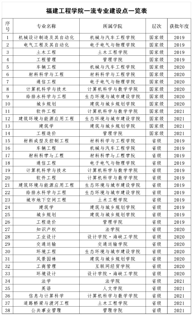 此次9个专业入选2021年度国家级、省级一流本科专业建设点,是学校贯彻落实习近平新时代中国特色社会主义思想,坚持立德树人根本任务,坚持服务新时代新福建建设,深化产教融合,扎实推进新工科建设和新时代卓越工程师培养的重要成果。下一步,学校将继续以国家级和省级一流本科专业建设为契机,发挥一流专业的示范引领作用,加强专业改革与创新,全面深化教育教学改革,深入推动“十四五”本科人才培养和专业建设规划落实落细;将继续以教育信息化推动教育高质量发展、引领教育现代化,推进现代信息技术与教育教学深度融合,推动“互联网+教育”向更高水平、更宽领域发展,努力建设一流专业、培养一流应用型人才,为学校早日建成一流应用型大学奠定坚实基础。(教务处供稿)
