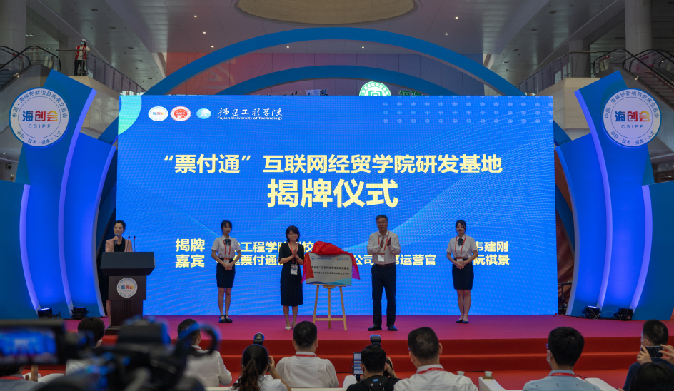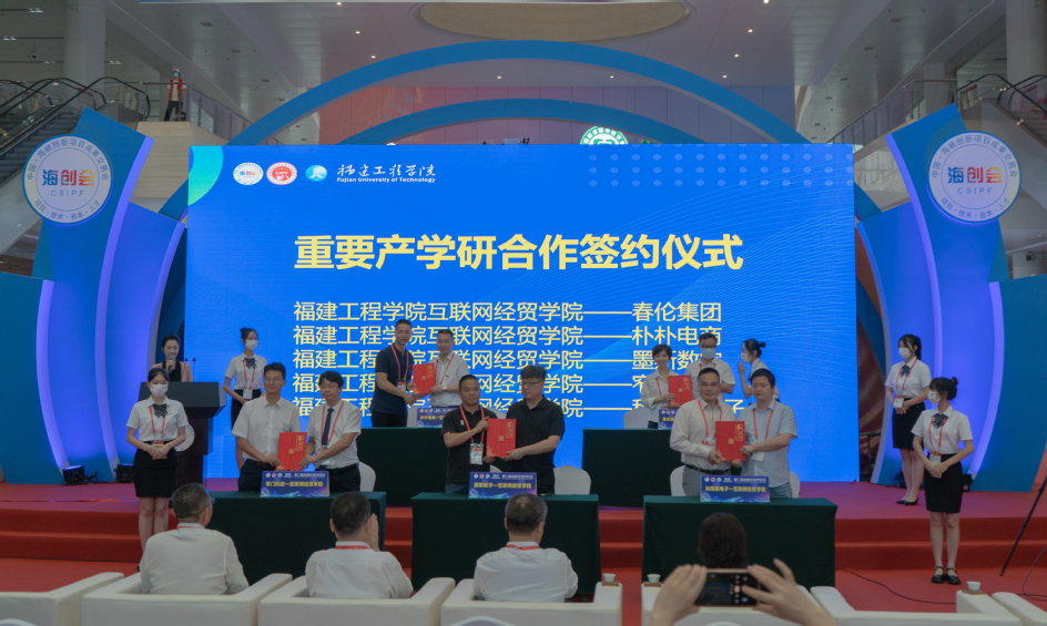 在产学研合作仪式上,第十二届全国政协委员、国家公务员局原副局长(副部长级)、中国国际经济技术合作促进会理事长杨春光作线上开场致辞,福建省招标采购集团副总经理丁宗庭、福建工程学院党委书记吴仁华先后发言。福建工程学院副校长韦建刚分别与福建平芯集成电路有限公司总经理喻海松、福建票付通信息科技有限公司首席运营官阮祺景等嘉宾,共同为校企合作成立的“工院-平芯”数字经济研究中心、“票付通”互联网经贸学院研发基地揭牌。随后,互联网经贸学院与春伦集团、朴朴电商、墨斯数字、窄门科技、科瑞新电子等五家企业举行重要产学研合作签约仪式,校企双方达成横向课题合作和就业实践合作意向,其中春伦集团将在5年合作期内,每年将为学校提供至少100个就业岗位。同时,校企深度合作成果“数据交易商城”正式启动。