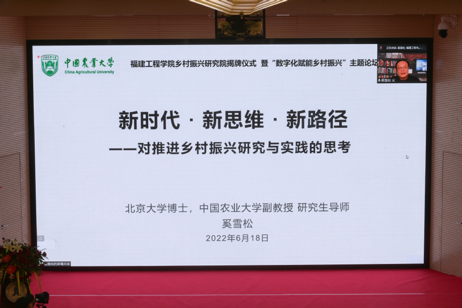 会议伊始,徐子青副书记代表学校为活动致开幕辞。徐副书记指出,“十四五”时期是全面推进乡村振兴、建设数字中国的发力期,福建工程学院乡村振兴研究院的成立既是主动融入国家“乡村振兴”“数字中国”战略布局的必然选择,也是学校追求高质量、深化优服务、增强新动能、建设一流应用型大学目标的体现。数字乡村建设是乡村振兴的战略方向,福建工程学院将积极融入乡村振兴发展新格局,持续致力于乡村振兴社会服务事业,为数字乡村建设与乡村振兴发展贡献力量。