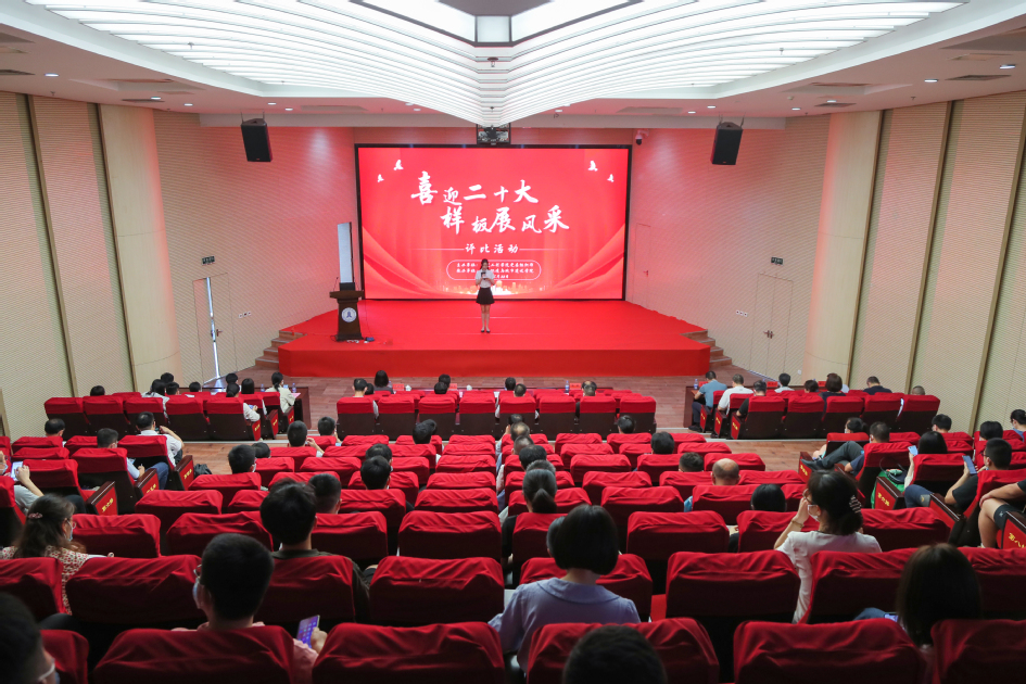 为进一步发挥党建工作样板支部表率示范作用,激励学校各级党组织和广大党员提振精气神,展现新气象,6月22日下午,学校在行政楼学术报告厅举行“喜迎二十大,样板展风采”评比活动。校党委副书记詹松青,组织部、宣传部、统战部、学工部、教师工作部负责人,各二级单位党委书记、副书记、组织员,党支部书记代表等100余人现场观摩评比。