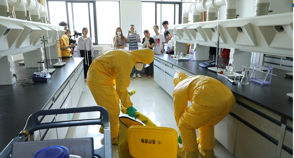 本次演练是学校在第21个全国“安全生产月”组织的系列安全活动之一,旨在响应新安法提出的“全员安全生产责任制”,加强安全应急培训,建设应急队伍应急处置能力,不断提高突发事件响应的针对性、实效性和操作性。演练模拟了实验室突发危险化学品洒落和有机废液转运溢洒突发事件,并遵照《福建工程学院实验室安全事故应急预案》的事故响应流程、应急处置措施组织演练,涵盖事件突发、紧急自救、紧急疏散、应急上报、应急处置、事故调查等多个环节,是实验室安全事故应急预案的一次实战演练。(设备处、武保部供稿)