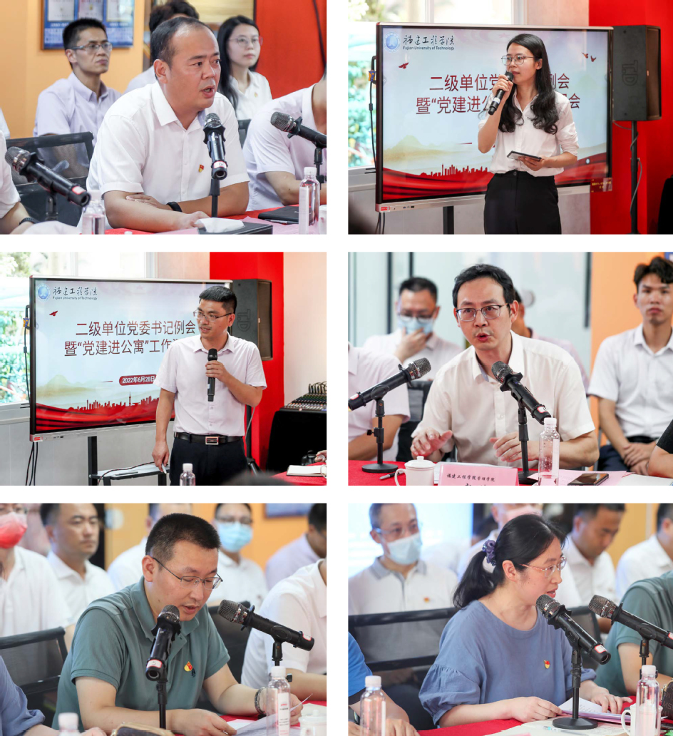 在随后举行的座谈会上,中铁十六局集团第三工程有限公司、福建晨曦信息科技集团股份有限公司、中建四局建设发展有限公司福州分公司等3家共建企业代表就校企党建共建工作作了分享,3个二级学院党委有关负责人就本单位“党建进公寓”推进情况进行了汇报。
