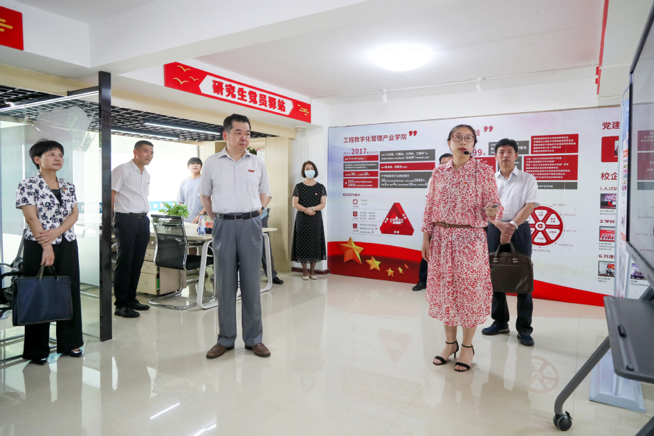 与会人员先后前往计算机科学与数学学院“拓扑园”党建育人中心、电子电气与物理学院“索仕图”党建育人中心、管理学院工程数字化管理产业学院进行实地观摩,并参加了材料科学与工程学院小铁青年党员红色加油站剪彩仪式。