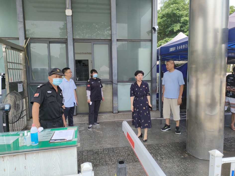 在旗山校区门岗,徐子青副书记详细了解暑期校园安全的保障情况,向坚守在一线的工作人员表示亲切慰问和诚挚感谢,并勉励大家继续坚守岗位、尽职尽责,加强疫情防控和出入人员管控,坚决守住校园安全和师生健康的防线。