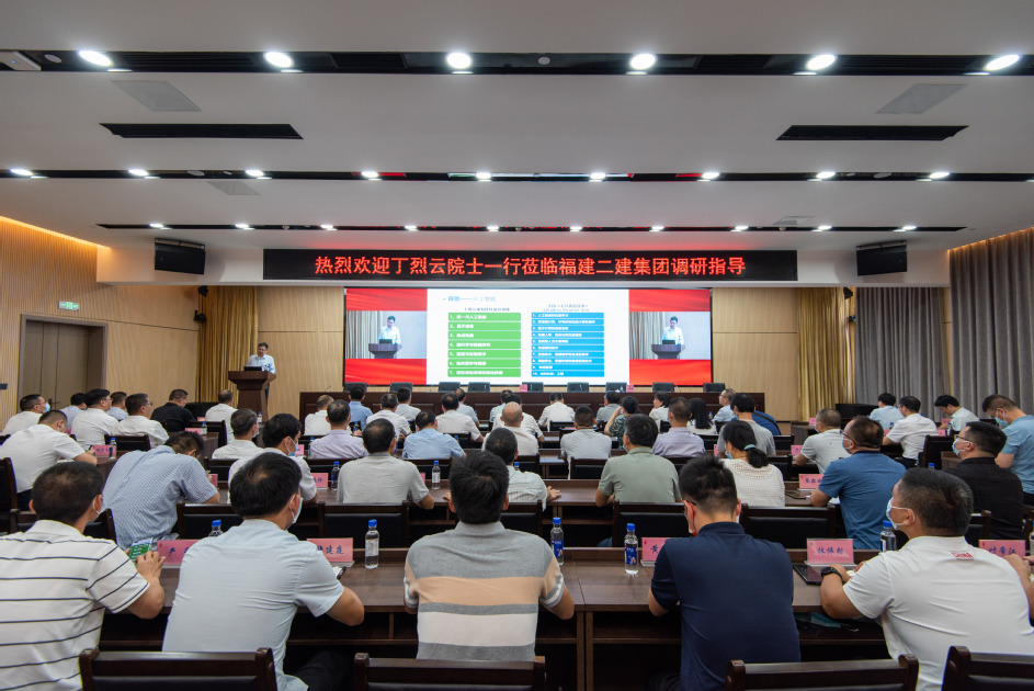示范项目调研结束后,丁烈云院士作了《智能建造推动建筑产业变革》专题报告,报告由福建工程学院工程管理研究院负责人主持,我校师生代表、省二建集团代表共100多人参加。报告会后,丁烈云院士以及来自华中科技大学、哈尔滨工业大学、山东建筑大学等高校的专家,与福建工程学院、省二建集团等课题团队成员进行座谈交流。课题组成员表示,将在前期研究基础上,进一步深化研究和实践应用,以中国华电福建总部大楼项目为契机,全方位运用BIM、物联网、人工智能、数字孪生等技术,打造智慧工地样板工程,引领和推动企业由传统建造产业向智能化、集约化方向转型升级,为福建乃至全国智能建造发展作出表率。(管理学院供稿)