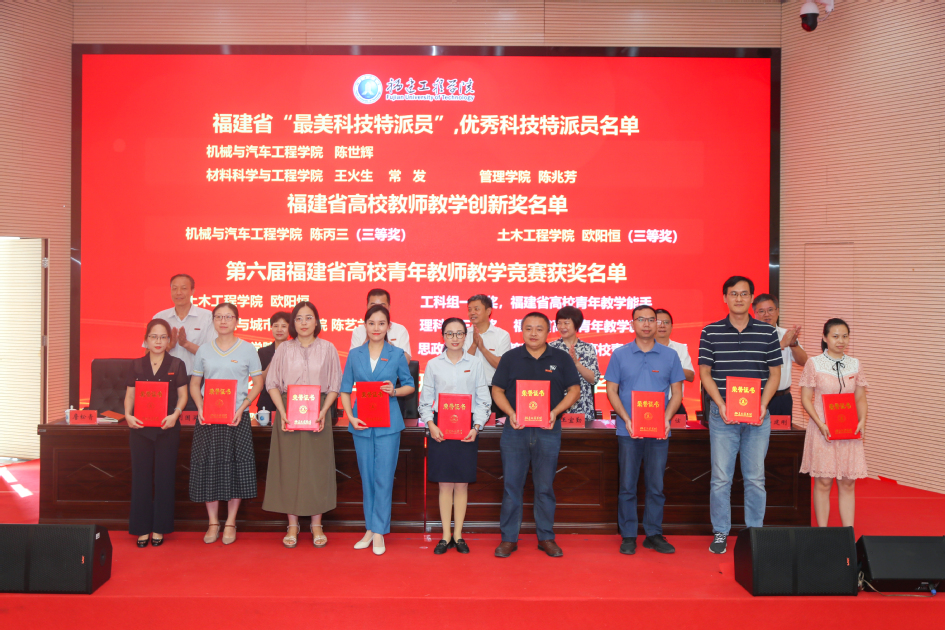 大会在庄严的国歌声中拉开帷幕。詹松青副书记宣读表彰决定,校领导分别为国家级一流本科专业建设点,国家级、省级产业学院,省科学技术奖,省“最美科技特派员”和优秀科技特派员,省高校教师教学创新奖和高校青年教师教学竞赛,省级专业学位研究生优秀教学案例,省社会科学优秀成果奖,全省统战理论政策研究优秀创新成果奖,省“互联网+”大学生创新创业大赛金奖指导教师,校本科课堂教学优秀奖、校优秀教师和优秀教育工作者等先进集体和个人代表颁奖。土木工程学院欧阳恒老师、建筑与城乡规划学院林哲民同学分别作为教师代表和学生代表发言。