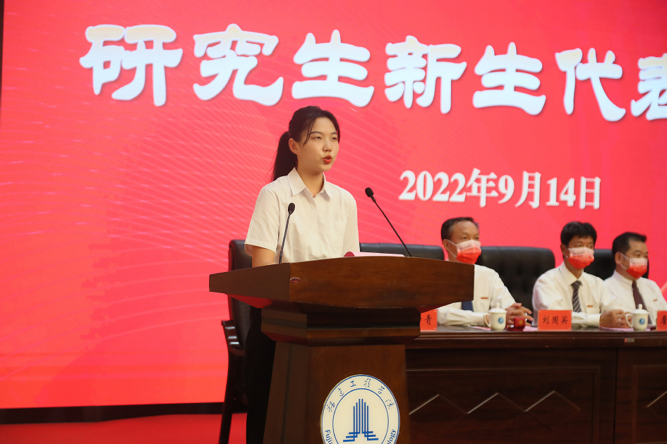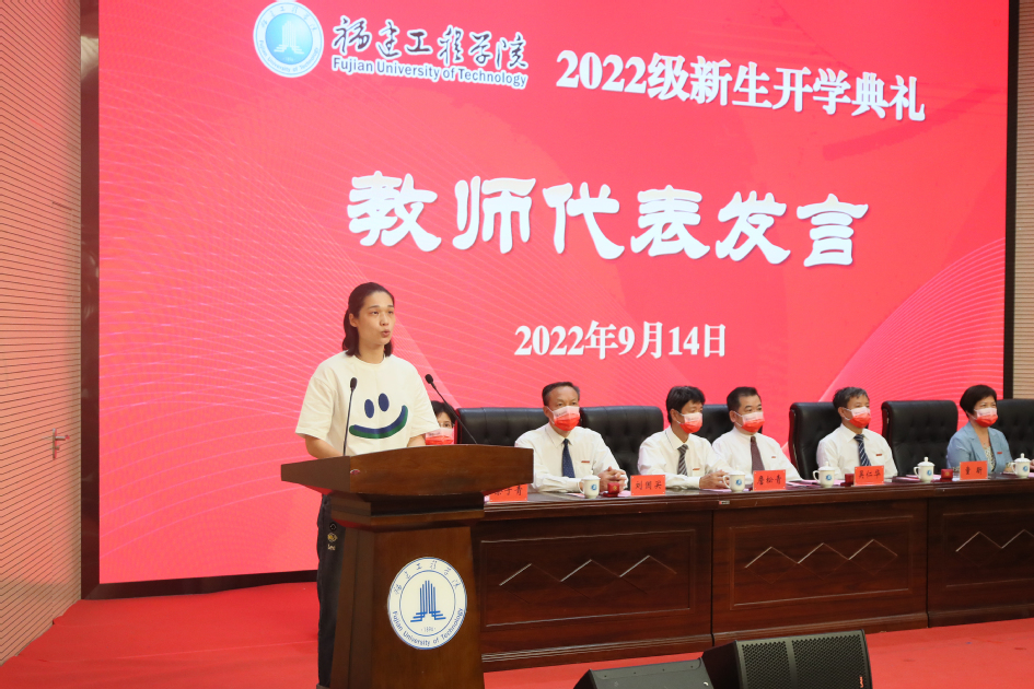 随着庄严肃穆的国歌响起,开学典礼正式开始。体育教研部林莉老师作为教师代表发言,她结合自己的排球运动员职业生涯,分享了个人成长经历,勉励同学们不负韶华、不懈奋斗,用汗水书写青春,用奋斗成就自我。电子电气与物理学院能源动力专业研究生倪沁玮、人文学院汉语言文学专业本科生黄佳怡代表新生发言,表示将牢记“真、诚、勤、勇”的校训精神,保持热爱,坚守初心,在福工这片沃土上探索无限可能、追逐人生梦想。