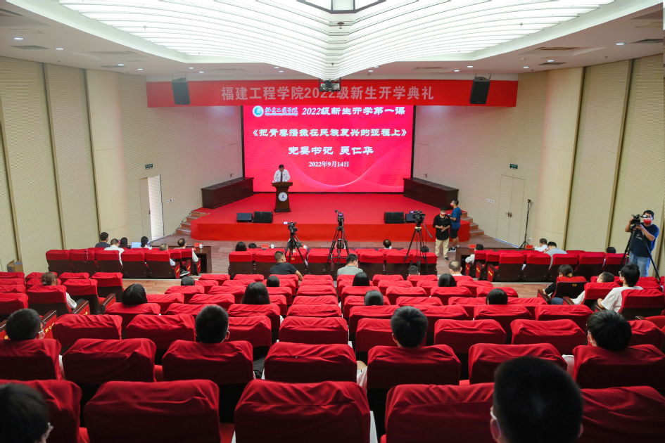 9月14日下午,校党委书记吴仁华为2022级全体新生讲授了题为《把青春播撒在民族复兴的征程上》的开学思政第一课。