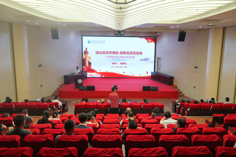 9月15日下午,学校特邀福建省发展和改革委员会党组副书记、副主任,省政府投资项目评审中心党组书记、主任张福寿到校开讲中层干部专题培训第一专题讲座。校领导、全校中层干部及师生代表200余人通过线上线下相结合的方式参会。讲座由校党委副书记詹松青主持。