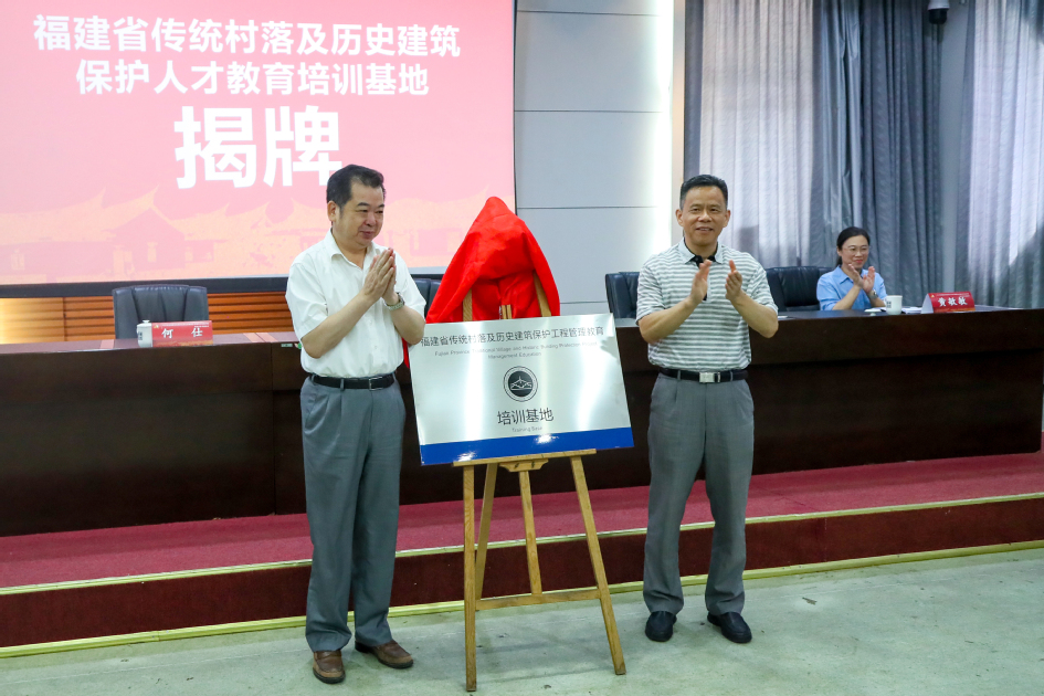 开班仪式上,吴仁华、苏友佺共同为福建省传统村落及历史建筑保护人才教育培训基地揭牌。吴仁华在致辞中,对省住建厅长期以来对学校事业发展的支持和关心表示感谢,介绍了学校近年来办学情况和成效,指出学校深入贯彻落实习近平总书记关于加强历史文化遗产保护的重要论述,充分发挥历史建筑保护领域的学科优势,开设了全省第1个、全国第9个历史建筑保护工程专业,主动参与服务我省历史文化遗产保护工作,成立了福建省传统村落及历史建筑保护工程管理教育培训基地,设立3个省级科研平台及福建传统建筑文化与营造技术省级科普教育基地,建立了福建省传统村落和历史建筑数据库,积累了深厚的理论支撑和丰富的实践经验,历史文化遗产保护特色已成为学校服务社会的一张名片。